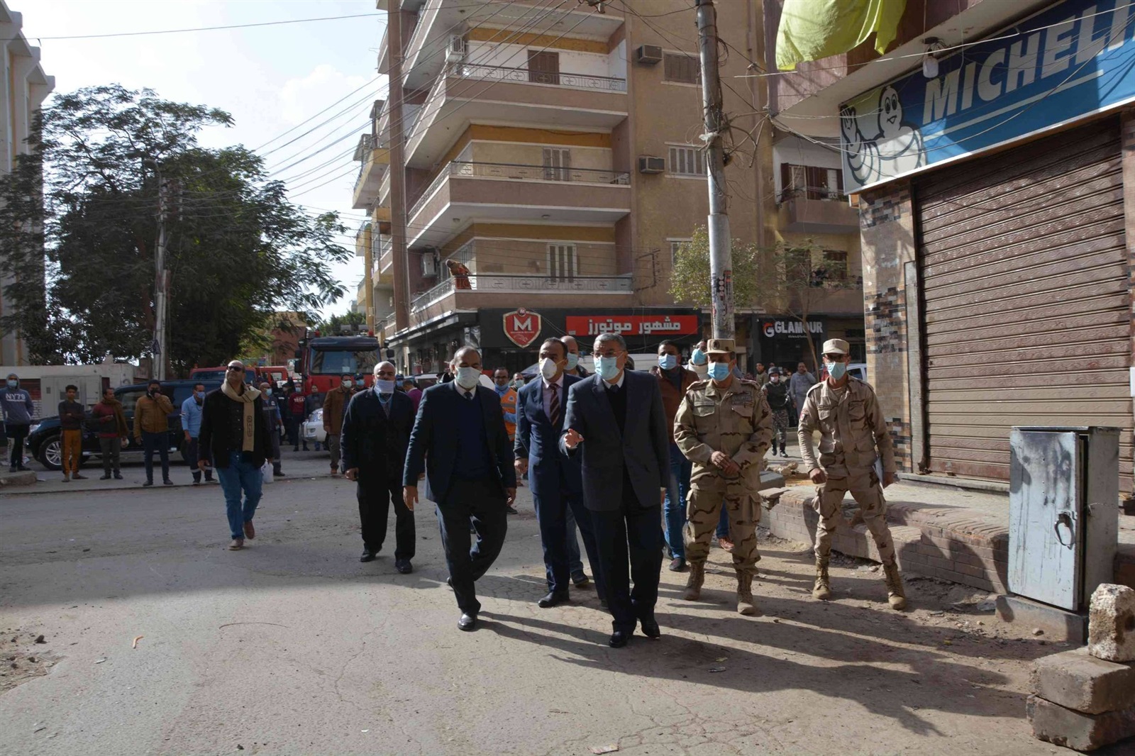 رافق المحافظ العقيد محمد حسن الكردي المستشار العسكري للمحافظة، العقيد محمد صلاح رئيس المدينة، الدكتور محمد النادي وكيل وزارة الصحة، الدكتور شريف مدحت مدير فرع الإسعاف بالمنيا.