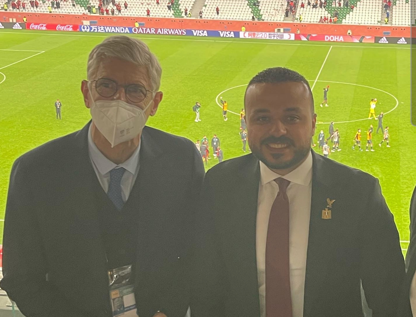شارك محمد الجارحي عضو مجلس إدارة النادي الأهلي متابعين بمجموعة من الصور له مع عدد من أعضاء مجلس الإدارة والمدرب الفرنسي ارسين فينجر من المدرجات بعد انتهاء مباراة الأهلي امام الدحيل القطري.