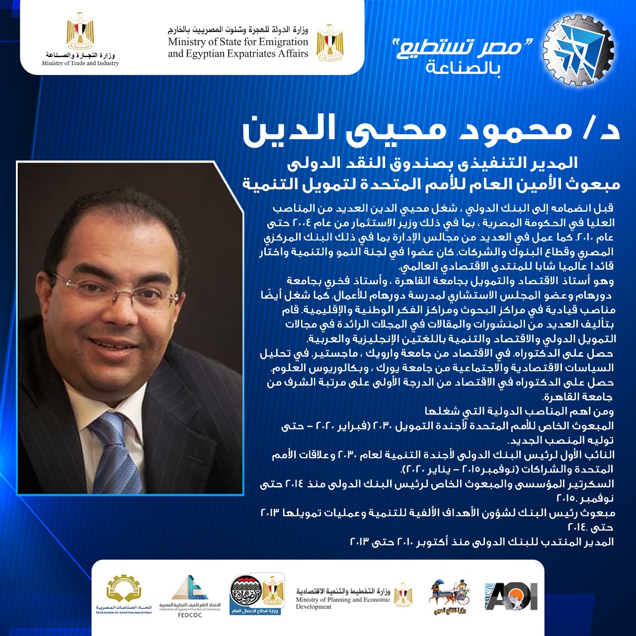 ومن المقرر أن يدور النقاش مع الدكتور محمود محيي الدين، خلال الندوة، حول عدة محاور وهي: استراتيجية تمويل الصناعات (كبيرة ومتوسطة وصغيرة) في فترة ما بعد جائحة كورونا، ودعم السياسات الصناعية لمصر، والسياسات المالية، والتحول الرقمي، والتوجه التصديري، والأهداف المرجوة بالتوافق مع رؤية مصر 2030، وكذلك التحديات وكيفية مواجهتها.