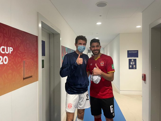 ونشر حساب نادي بايرن ميونخ عبر موقع " تويتر" صورة تجمع ياسر إبراهيم بتوماس مولر، معلقة: "قدمتم مباراة جيدة يا أهلي".