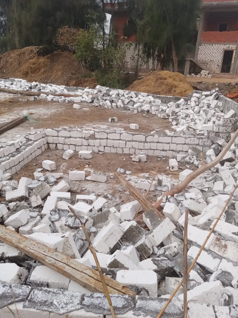 - إزالة حالة تعدي على الأراضي الزراعية بمساحة ١٠٠ متر عبارة عن مباني وأسوار بالطوب الأبيض بحوش عيسى.