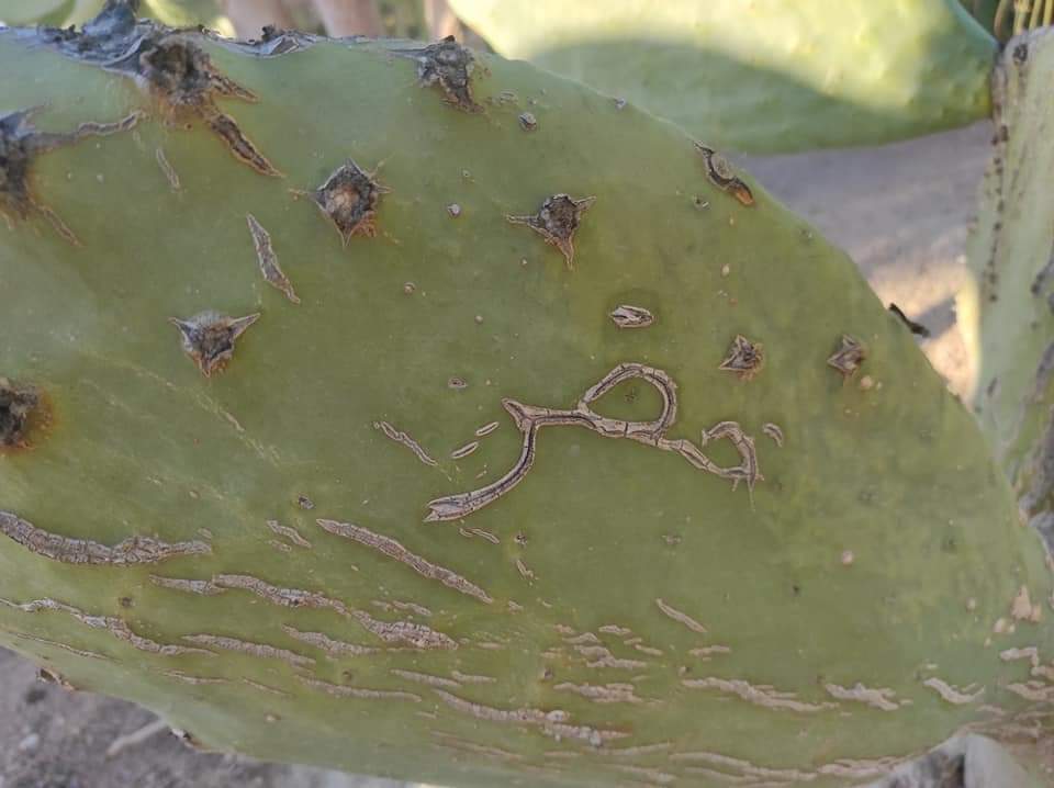 كتب نبات الصبار في مزرعة الصبار بالجبيل بطور سيناء اسم صاحب المزرعة الذي يرعاه دون تدخل من صاحب المزرعة، وكأنه يكافئ صاحبه على رعايته له وصبره على الزراعة في تلك الأراضي الوعرة.