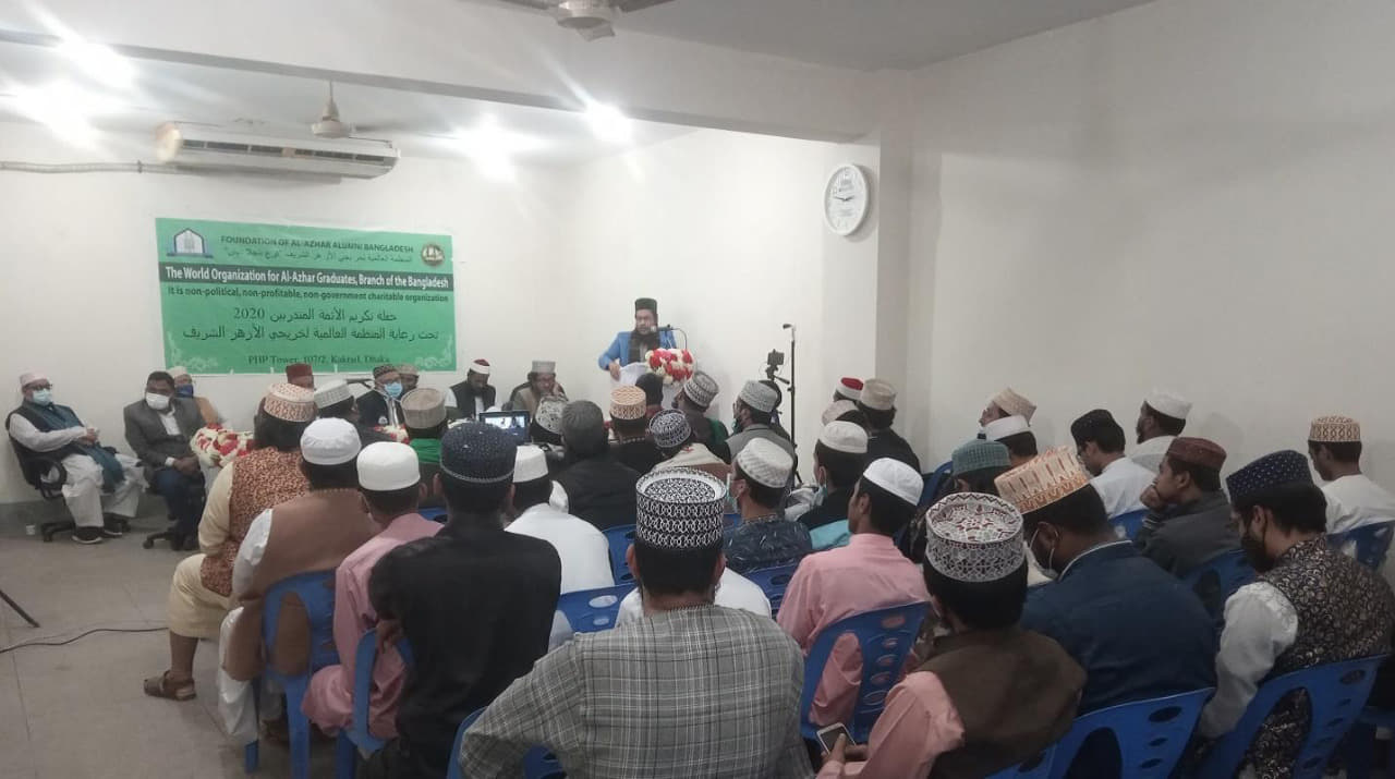 عقد فرع المنظمة العالمية لخريجي الأزهر الشريف ببنجلاديش، حفلة تكريم للأئمة المتدربين، الذين تلقوا دورتهم التدريبية، بمقر المنظمة الرئيس بالقاهرة، عبر تقنية الفيديو كونفرانس، وذلك بمركز الساحة بالعاصمة داكا بنجلاديش.
