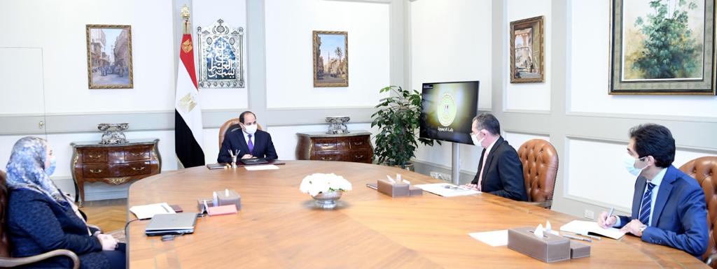 وقال السفير بسام راضي ، المتحدث الرسمي باسم رئاسة الجمهورية ، ان الاجتماع تناول "متابعة برامج وزارة التضامن الاجتماعي الخاصة بالتنمية المجتمعية على مستوى الجمهورية".