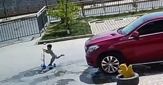 نشر موقع Live Leak مقطع فيديو مرعبا تم رصده على أحد الطرق السريعة في الصين ، حيث كادت سيارة تصطدم بطفل كان يركض على الطريق السريع.وظهر في الفيديو المنشور في مدينة ميتشو بماقطعة قوانجدونج طفل يركض فجاة لعبور الطريق ، وظهرت السيارة وهي تسير بالمنطقة ، ولكن انحرفت السيارة على الفور لتفادي الطفل ، مما تسبب في فقدان السيطرة على السيارة ، وتحطم جانبها على الطريق ، ولكن لحسن الحظ لم يصاب الطفل بأذى ، والقضية قيد مزيد من التحقيق.ونصح خبراء السيارات السائقين بضرورة الإلتزام بالقواعد المرورية أثناء القيادة ، وهي على النحو التالي :