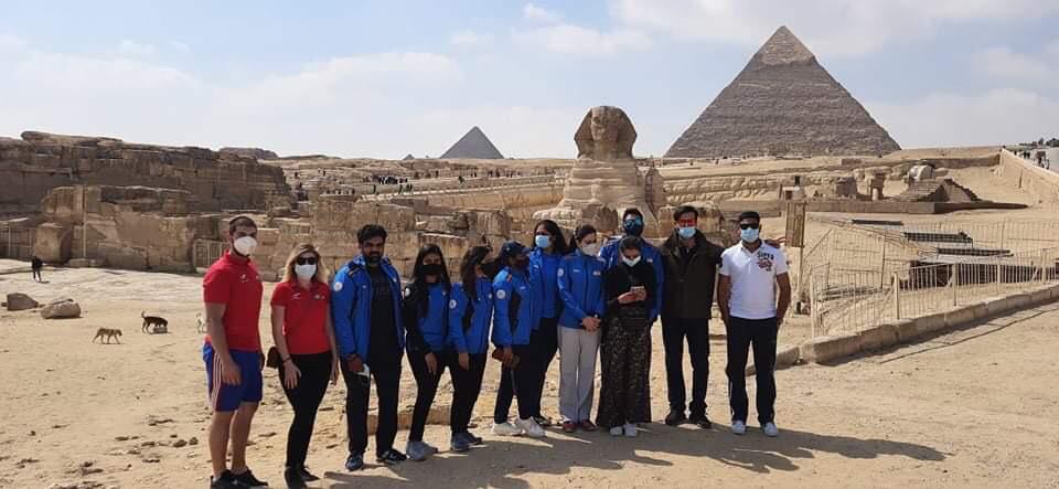 وحرص أعضاء البعثتين على التقاط مجموعة من الصور التذكارية مع أهرامات الجيزة، وأبو الهول في جو ساده البهجة والسعادة، وذلك ضمن الفعاليات المصاحبة لبطولة كأس العالم للرماية بالخرطوش التي تقام بمصر في الفترة من 22 فبراير حتى 5 مارس 2021.