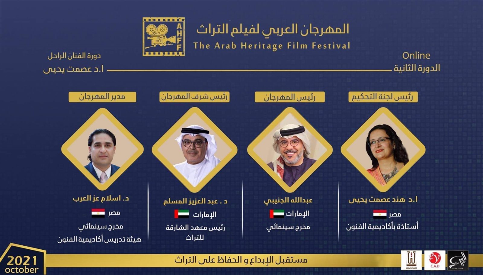 أتفق كل من الدكتورة هند عصمت يحيى رئيس لجنة التحكيم والدكتور إسلام عز العرب مدير المهرجان، على إختيار الدكتور عبد العزيز المسلم رئيس معهد الشارقة رئيسًا شرفيًا للمهرجان، والمخرج السينمائى عبد الله الجنيبى رئيسًا للمهرجان من دولة الإمارات العربية، كما تم إختيار لجنة التحكيم، وكذا لجنة المشاهدة وإنتقاء الأفلام من مختلف الدول العربية، كما تم فى الدورة الأولى للمهرجان، من قبل الدكتور عصمت يحيى رحمه الله والدكتور إسلام عز العرب، بهدف بناء روابط ثقافية وفنية بين مصر والدول العربية، مشيرًا أن مؤسسة عصمت يحيى للثقافة والفنون والتنمية، ستظل منارة للفنون فى مصر والوطن العربى، وهذه هى رسالتنا المنشودة فى نشر الثقافة والحفاظ على التراث والوعى بأهميته.
