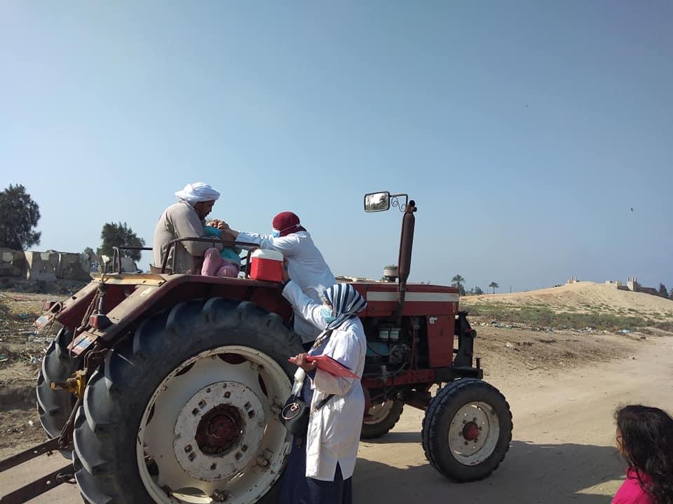 وفي أحد مراكز الإسماعيلية، تسلقت أخصائية طبية، ضمن الفرق المتحركة، جرارا زراعيا، للصعود إلى طفل كان برفقة أبيه العامل بإحدى الأراضي الزراعية، لتطعيمه، في لمسة إنسانية تضاف إلى السجل الحافل للأخصائيات الصحيين بمحافظة الإسماعيلية.