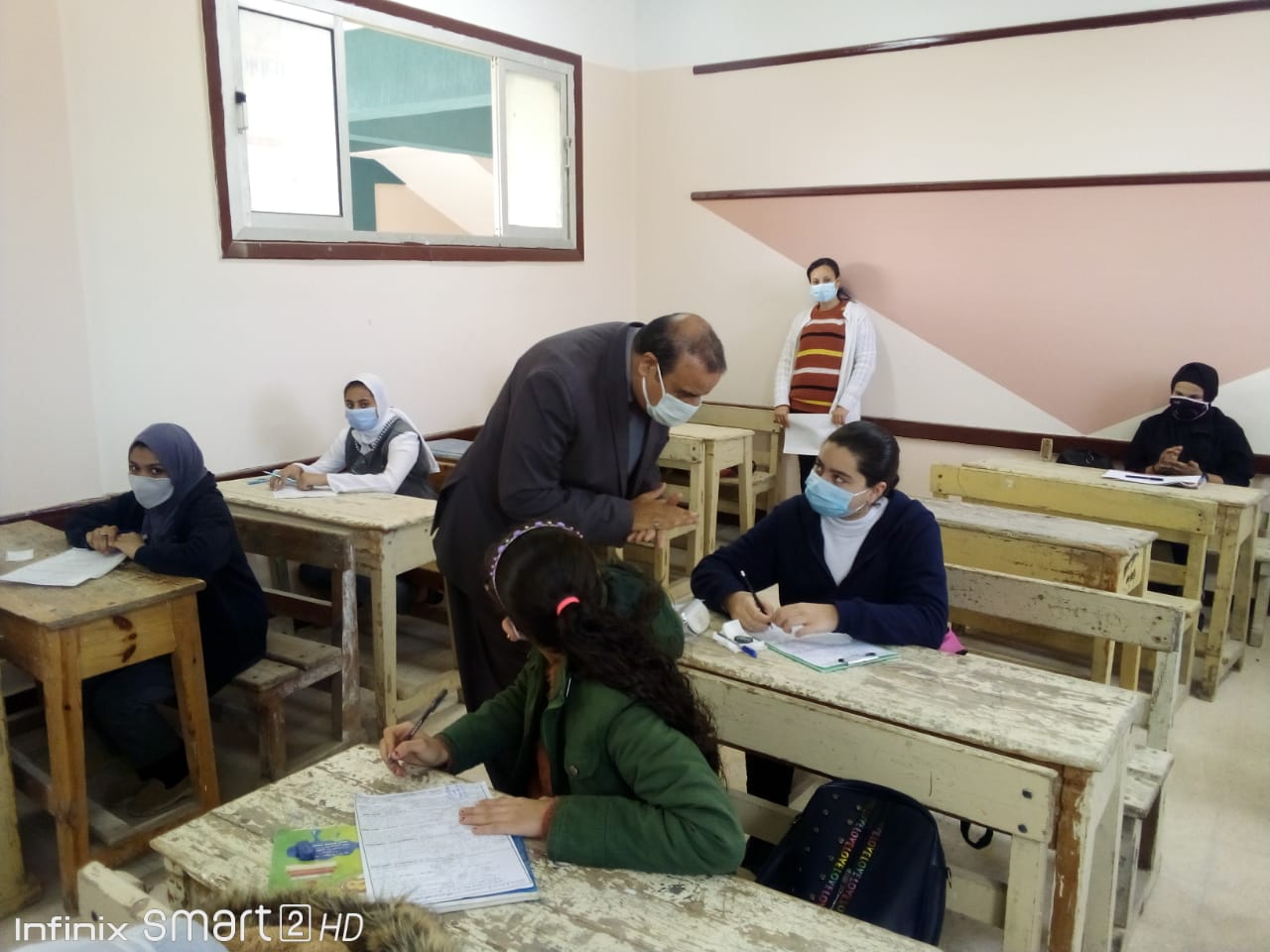 حيث تابع سلامة مسار امتحان نهاية الفصل الدراسي الاول لطلاب الصف الثاني الإعدادي فترة واحدة لمدة ساعتين بنظام أسئلة الاختيار من متعدد وسط تدابير وقائية مشددة في مواجهة جائحة فيروس كورونا المستجد والتي تأتي في إطار الحرص على صحة وسلامة أبنائنا الطلاب .