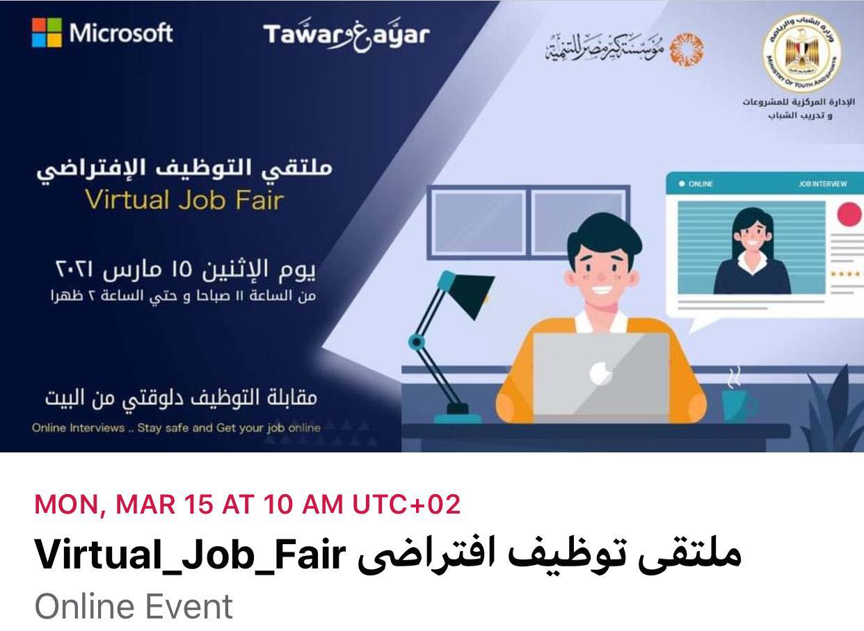 تنظم وزارة الشباب والرياضة من خلال الادارة المركزية للمشروعات وتدريب الشباب (الإدارة العامة للمشروعات)، الملتقى التوظيفي الافتراضي، يوم الاثنين الموافق 15 مارس الجاري، بدءا من الساعة ١١ صباحا وحتى الساعة الثانية ظهرا، من خلال مبادرة "طور وغير"، بهدف تقليل التجمعات والحفاظ على سلامة الشباب المشارك بملتقيات التوظيف.