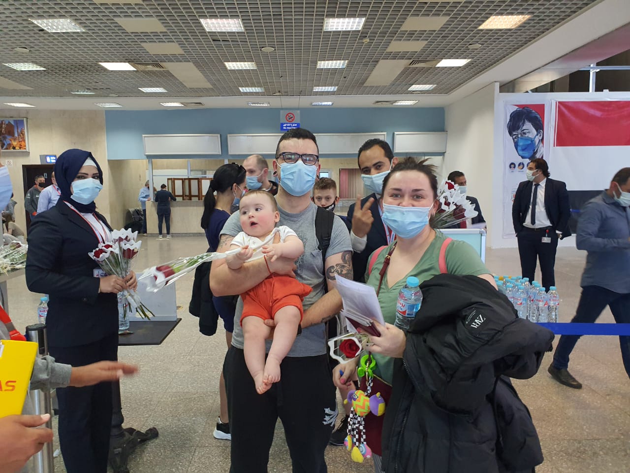 قام فريق العلاقات العامة بالمطار بالترحيب بركاب الطائرة فور دخولهم صالة الوصول وذلك بتقديم الورود وتوفير كافة التسهيلات اللازمة لإنهاء إجراءات وصولهم مع الحفاظ على إجراءات الوقاية والسلامة والتباعد الإجتماعى .