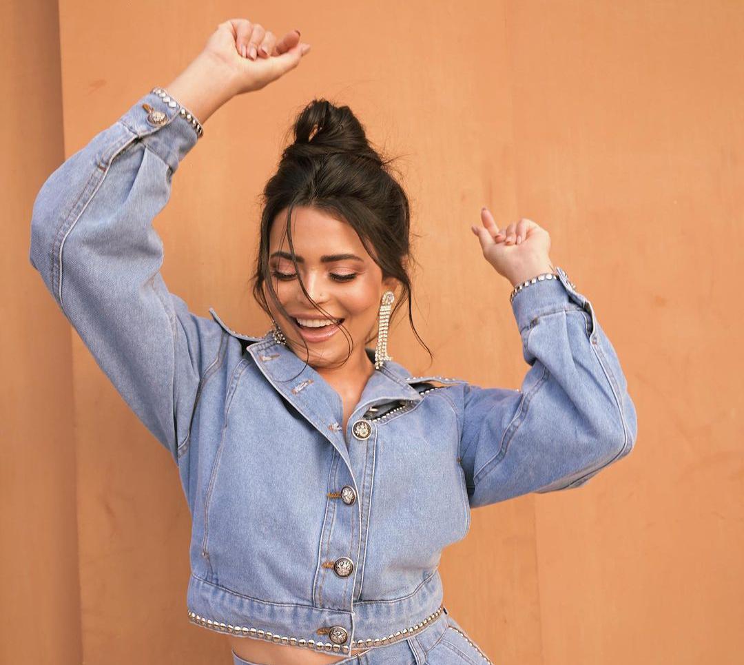 وتألقت بإطلالة كاجوال شبابية، وارتدت جاكيت جينز قصير، اوفر سايز، وبنطلون من نفس الدرجة والخامة، وأكملت جمال الطلة باكسسوارات بسيطة، واكتفت بحلق بأذنيها طويل ولامع، وحرصت على اعتماد تسريحة شعر مرفوع، ولوك ميك اب هادئ بدرجات النيود، يبرز ملامحها الجميلة.