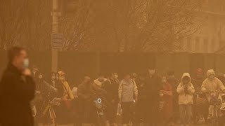 اجتاحت عاصفة رملية قوية عدة مناطق شمال الصين من بينها العاصمة بكين ما تسبب في تعطيل حركة المرور بسبب سوء الرؤية الناجمة عن التلوث والذي وصل إلى أعلى مستوياته، وتحول لون السماء إلى الأصفر بعد أن اصطحبت الرياح القوية معها الرمال من شمال غرب البلاد وذلك حسبما عرضت قناة يورنيوز.