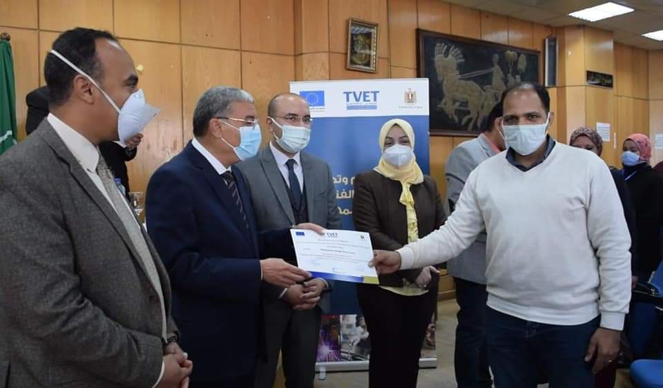 كرم اللواء أسامة القاضي، محافظ المنيا، يرافقه نائبه الدكتور محمد أبو زيد، 53 من المتدربين على المنهج المطور لريادة الأعمال والابتكار، والتوجيه والإرشاد، لمدرسي مديرية التربية والتعليم بالمحافظة، بجانب ممثلين من ديوان عام المحافظة، وذلك في ختام فعاليات أسبوع التعليم الفني والتدريب المهني بالمحافظة، في إطار تنفيذ المبادرة الرئاسية "مراكب النجاة" للتوعية بمخاطر الهجرة غير الشرعية، وبدعم من برنامج دعم إصلاح التعليم الفني والتدريب المهني "TVET EGYPT"الممول من الحكومة المصرية والاتحاد الأوروبي، بالتعاون مع وزارة الدولة للهجرة وشئون المصريين بالخارج.