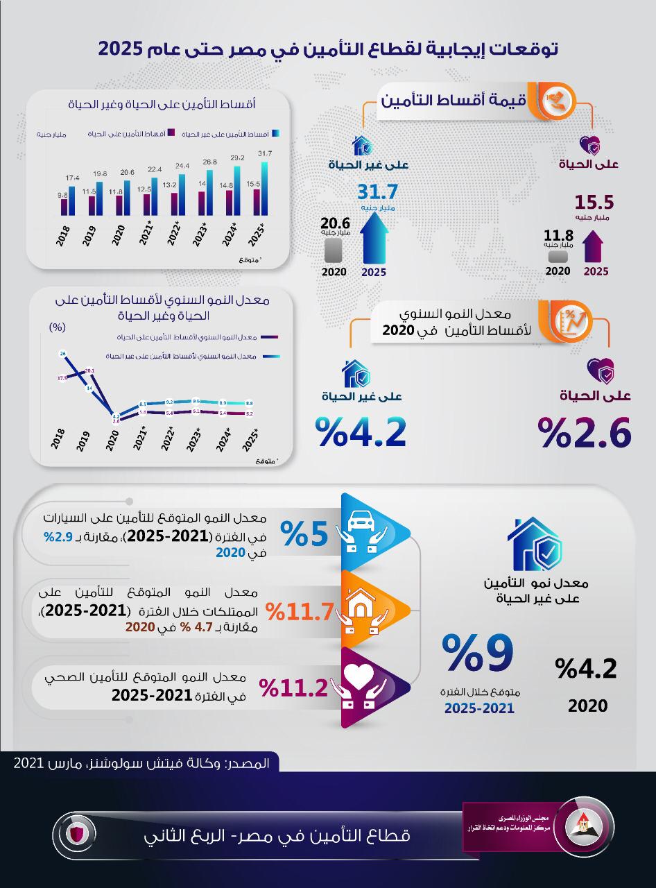 نشر مركز المعلومات ودعم اتخاذ القرار إنفوجراف جديدًا بعنوان "توقعات إيجابية لقطاع التأمين في مصر حتى عام 2025".