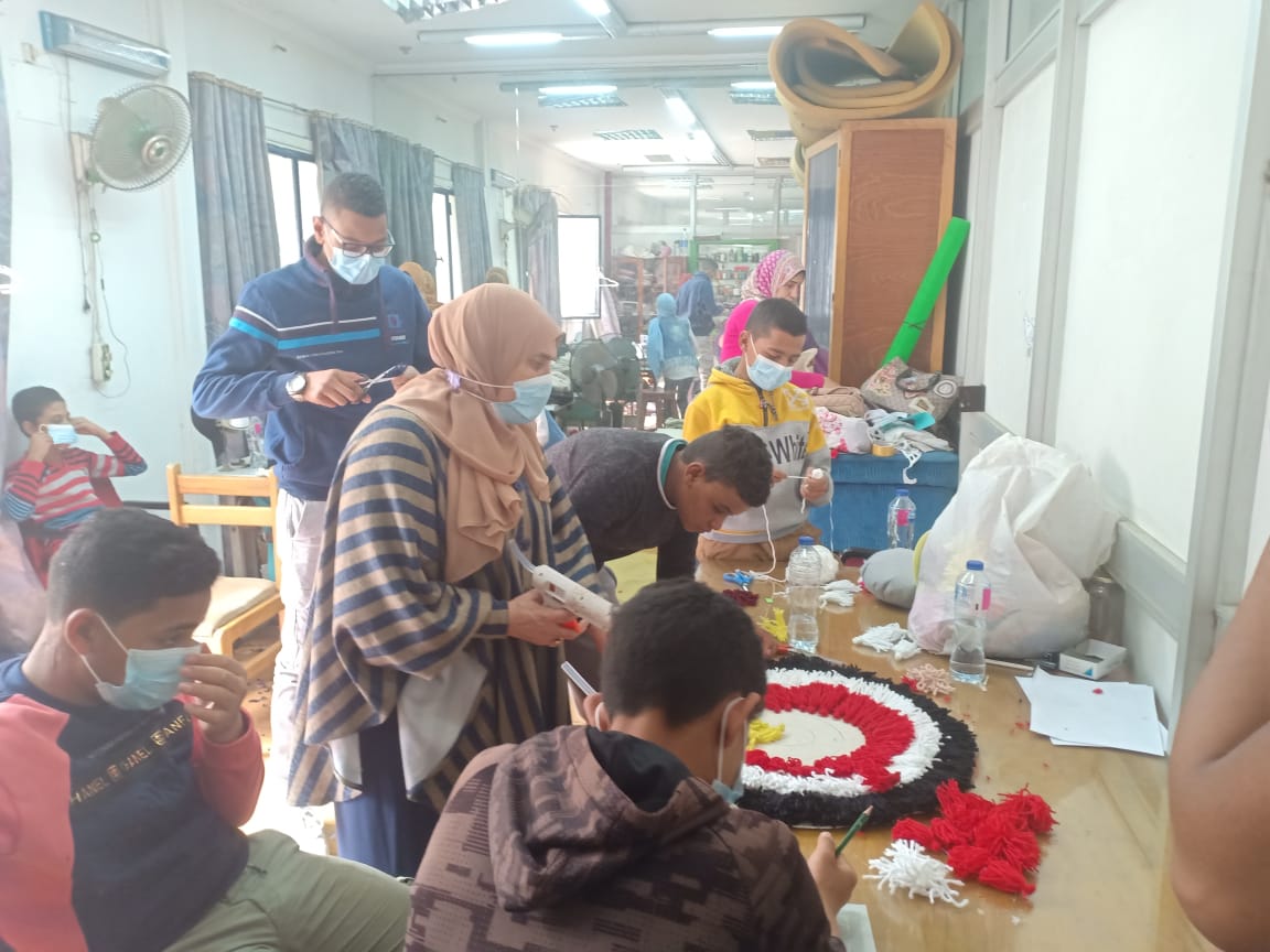 وأوضحت أن الجلود المستخدمة لجلد الماعز والذى يتم التغلب على ملمسه الخفيف بإضافة مادة ذات كثافة، بالإضافة لإستخدام آلة كاويه للحفر على الجلد وعناصر مختلفة لتصنيع عدة مشغولات وإكسسورات مثل المحافظ والأساور، بينما نفذت الفنانة نانسى مغربى ورشة فنية بعنوان "مشغولات من الحبال" إستخدمت فيها الحبال القطنية والغراء الأبيض للتشكيل الفنى لعمل فوانيس ووحدات ديكورية، بالإضافة لبدء اعمال ورش الأركت، وحدات الإضاءة المصنوعة من الخرز، الحياكة والطباعة بالاستنسل .