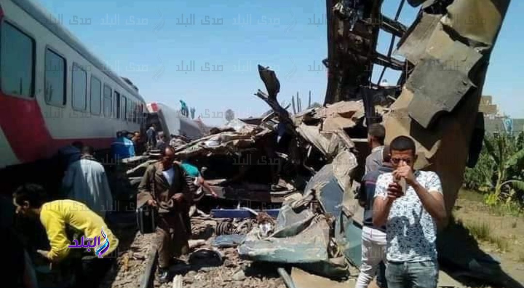 توافد مئات المواطنين برفقة قوات الحماية المدنية والإسعاف؛ لإنقاذ مُصابي حادث تصادم قطارين مكيفين وخروج ثلاث عربات عن القضبان بمحطة السكةالحديد بقرية الصوامعة غرب التابعة لمركز طهطا شمالي محافظة سوهاج.