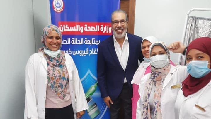 ونشر مدحت العدل مجموعة من الصور من داخل مركز صحة النزهة معلقا :" الحمدلله اخذت الجرعة الأولى من التطعيم ضد كورونا".