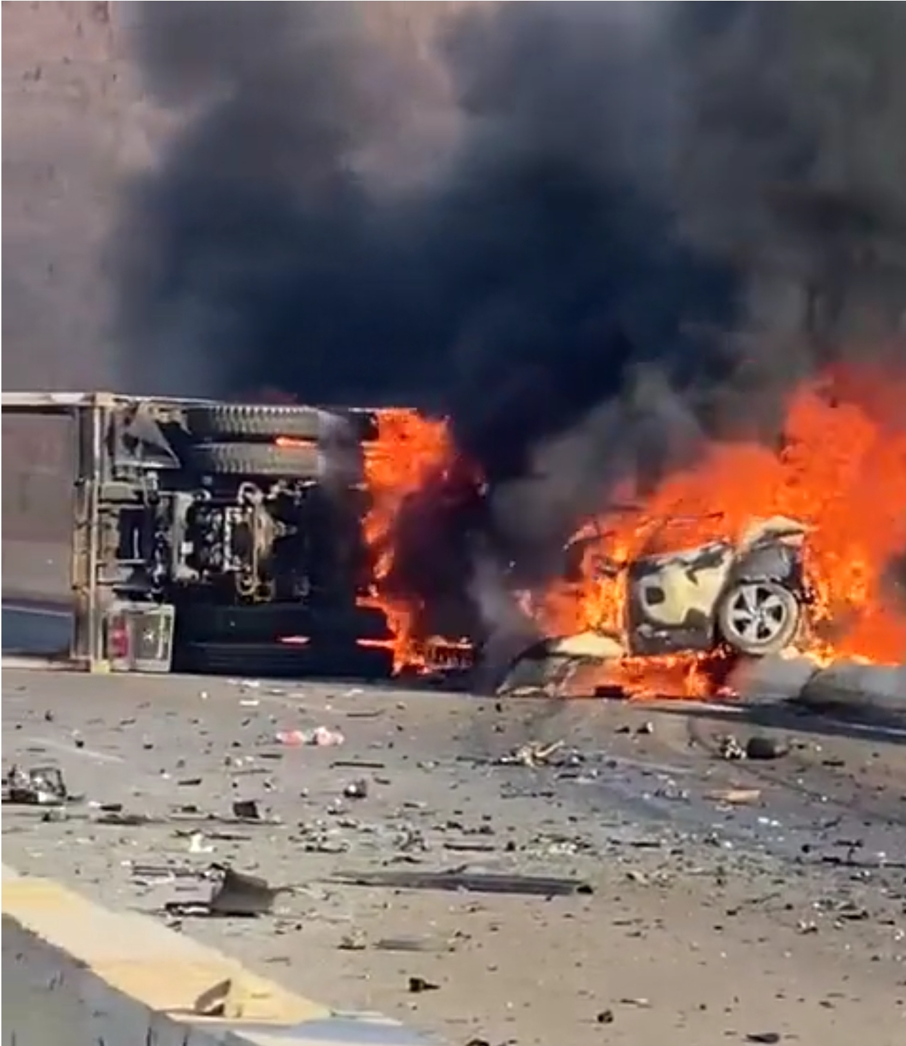 وكان احد الأشخاص على الاتجاه المعاكس للطريق قد قام بتصوير المحاولة الجنوبية التي تشبه الانتحار الا ان السيارة اصطدمت قبل أن يستدل على رقمها .