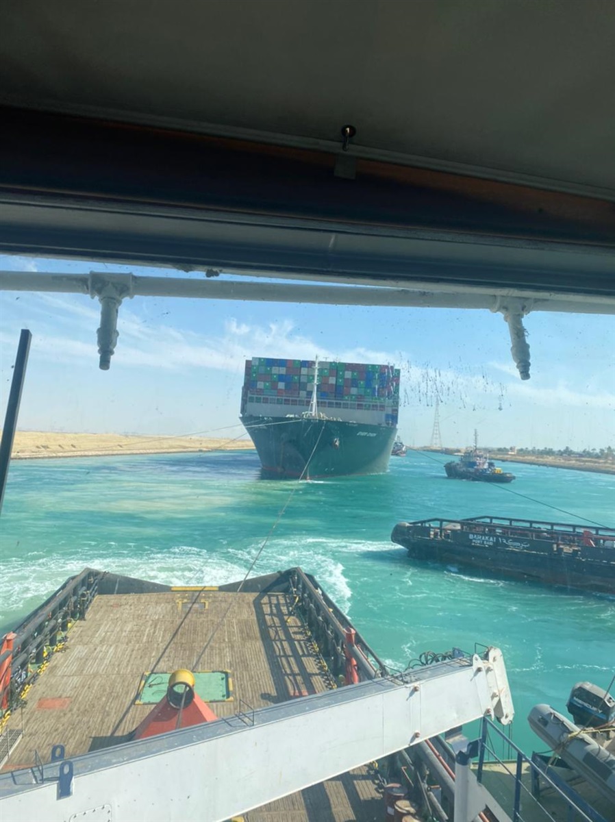 وبدأ، اليوم الاثنين، تعويم سفينة الحاويات البنمية الجانحة EVER GIVEN بنجاح بعد استجابة السفينة لمناورات الشد والقطر حيث تم تعديل مسار السفينة بشكل ملحوظ بنسبة ٨٠% وابتعاد مؤخر السفينة عن الشط بمسافة ١٠٢ متر بدلا من ٤ أمتار.