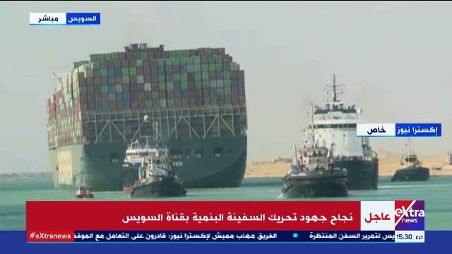 عرضت قناة اكسترا نيوز مقطع فيديو للحظة تحرك السفينة البنميةEVER GIVENبعد النجاح في تعويمها وإنهاء تعطل الملاحة في قناة السويس، وأشار الفيديو إلى أن 15 سفينة شاركت فيما يشبه الزفة للسفينة البنمية بإطلاق أبواقها تعبيرا عن سعادة أطقمها بانتهاء الأزمة.
