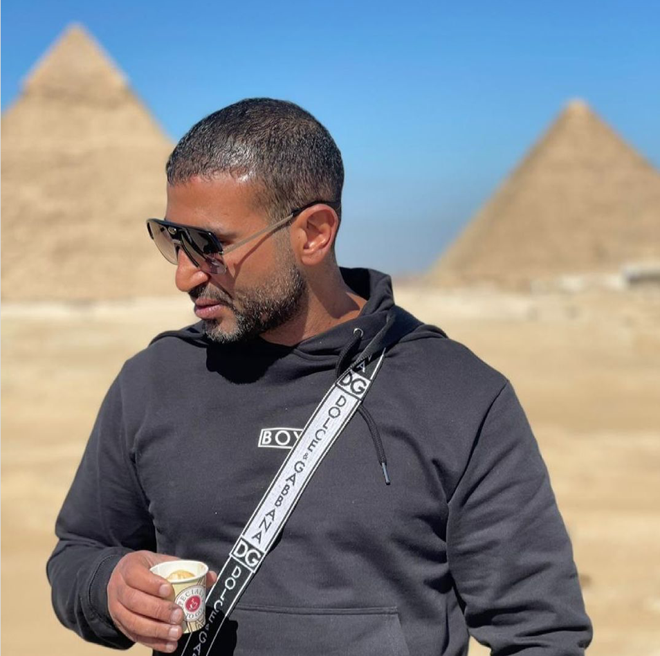 وظهر احمد سعد فى الصورة من أمام الاهرامات ، وعلق علي الصورة قائلا : شكلي قبل القهوة .