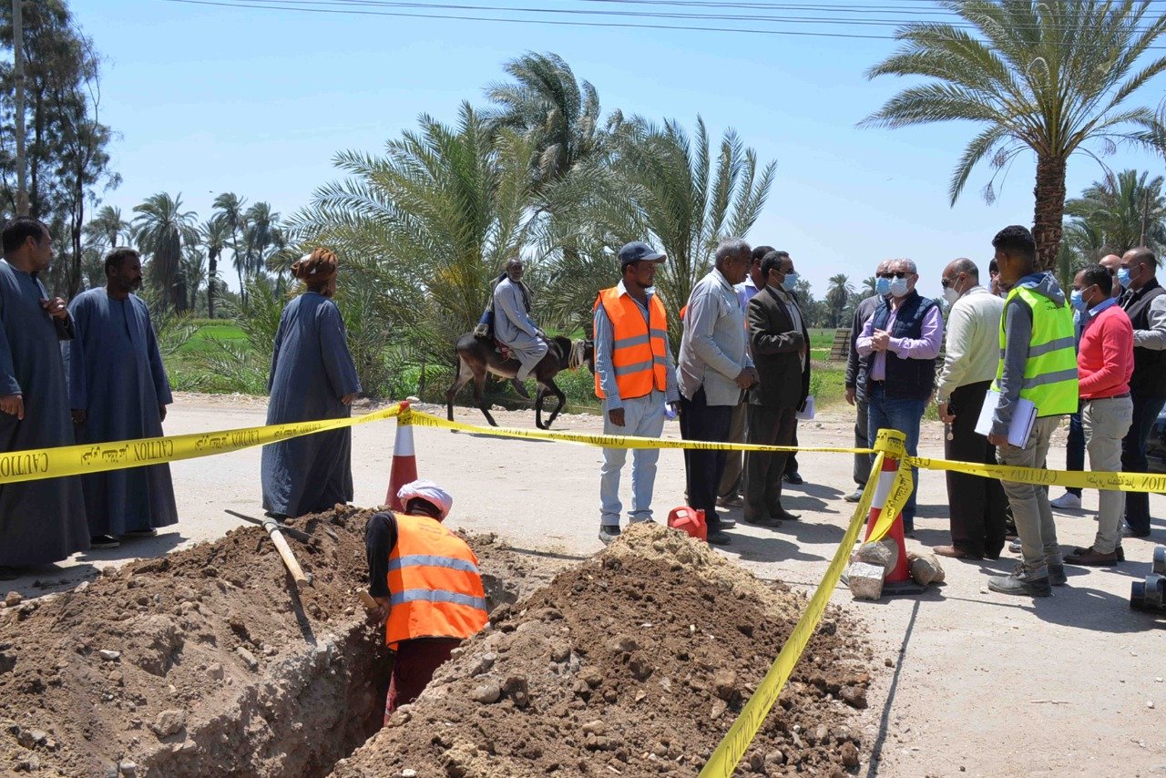 كما توجه محافظ الأقصر، إلى قرية الدير لمتابعة أعمال مد وتدعيم وتطوير شبكات مياه الشرب بالقرية، حيث يتم أعمال مد وتدعيم لمياه الشرب بالقرية بطول 15 كم ضمن أعمال مد وتدعيم على مستوى مدينة إسنا بإجمالي أطوال 54 كم، حيث استمع المحافظ من مسئولي الشركة المنفذة إلى معدلات نسب التنفيذ التي تجري بصورة متقدمة حيث تم تنفيذ 50% من الأعمال المقررة خلال مدة 15 يوما.