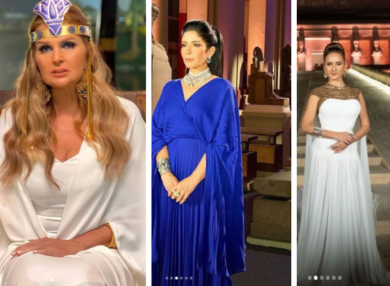 كانت أغلب إطلالات النجمات من أختيار الإستايلست مي جلال، وقد حملت فساتين المشاهير خلال مشاركتهن في موكب نقل المومياوات الملكية توقيع مصممين أزياء عرب و مصريين .