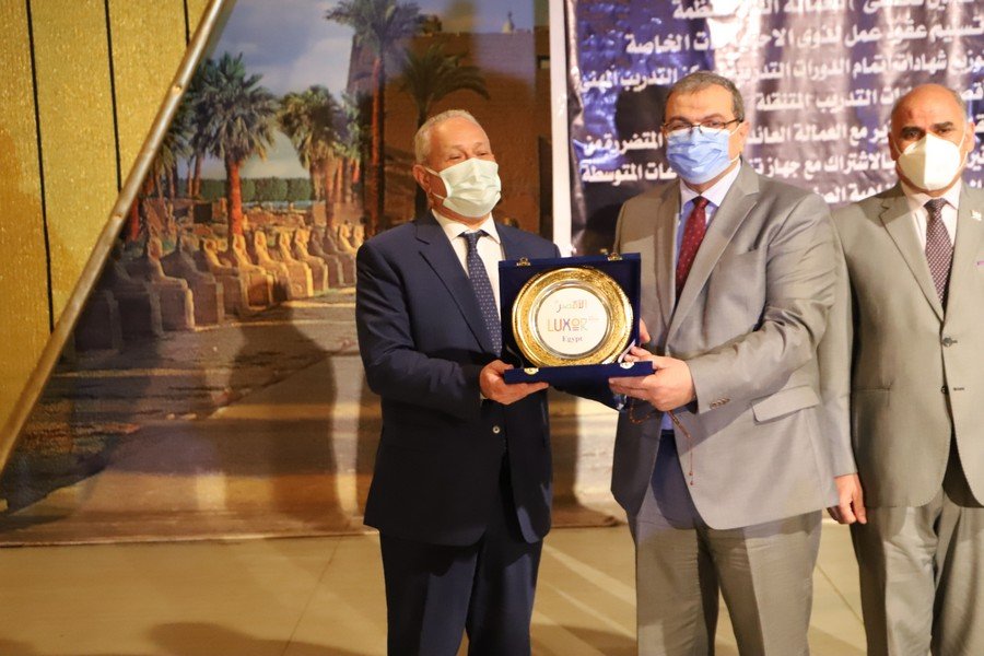 كما أهدى المحافظ درع المحافظة إلى وزير القوى العاملة تقديرًا له على جهده في الارتقاء بالعملية الإنتاجية من خلال توفير فرص عمل لذوي الهمم والعزيمة في إطار حياة كريمة، فضلا عن رعاية وحماية ومساعدة العمالة غير المنتظمة بتسليم بوالص تأمين على الحياة لهم ضد الحوادث الشخصية، حيث تغطي الوثيقة الوفاة والعجز الكلي أو الجزئي المستديم بما في ذلك نفقات العلاج الطبي.