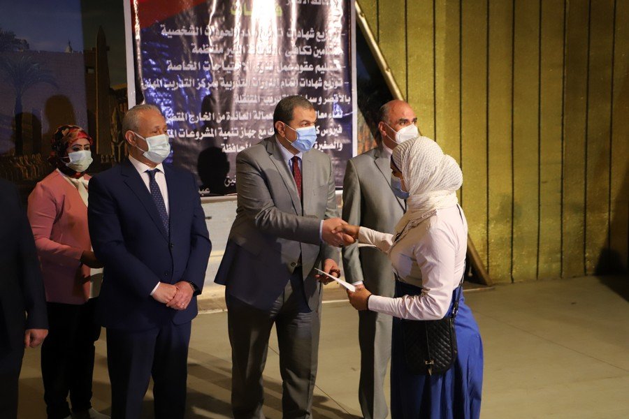 سلم وزير القوى العاملة محمد سعفان، ومحافظ الأقصر مصطفى ألهم، اليوم السبت، 205 شهادات إتمام الدورات التدريبية للجنسين مجانا، على مهن التدريب بمركز الرضوانية، ومهن الخياطة والتفصيل، وكهرباء تركيبات ـوسباكة صحية بوحدة التدريب المتنقلة التي وفرتها وزارة القوى العاملة لخدمة أبناء محافظة الأقصر، وتواجدها أمام ساحة الطيب فى مدينة القرنة غربى المحافظة، لتقدم تدريبات مهنية مميزة للشباب والفتيات على مختلف الحرف.