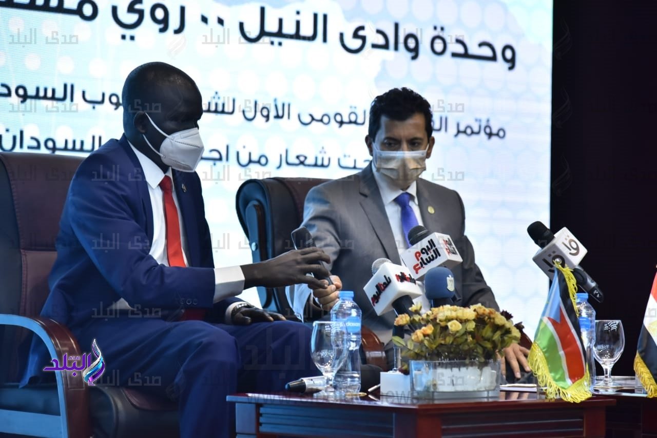 وقع وزير الشباب والرياضة الدكتور أشرف صبحي، بروتوكول تعاون مع نظيره الجنوب سوداني الدكتور ألبينو بول، وذلك استكمالا لفعاليات مؤتمر القاهرة القومي الأول لشباب جنوب السودان الذييعقد خلال الفترة من 3 ابريل وحتى 8 ابريل 2021، بالمركز الاوليمبي بالمعادي، والتقطت الصور التذكارية بين السادة الحضور.