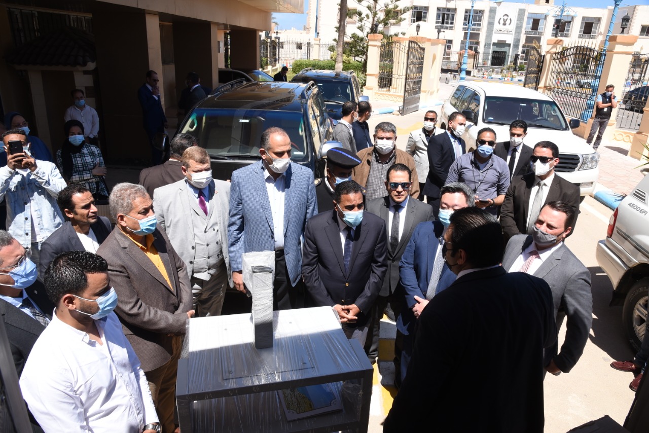 واستقبل اللواء خالد شعيب محافظ مطروح اليوم الخميس رئيس مجلس إدارة االشركة والوفد المرافق له وذلك لإهداء المحافظة أجهزة المناظير لتوزيعها على مستشفى مطروح العام في إطار المشاركة المجتمعية الفعالة للشركة .