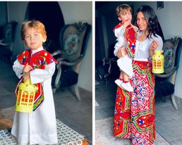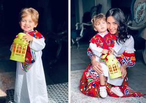 بأزياء رمضانية مبهجة وفانوس فسفوري جميل، احتفلت مارينا أنور النمر مع طفلها بوليكاربوس ملاك ميخائيل، صاحب العامين، بجلسة تصوير للشهر الكريم أخذت وقتاً قصيراً جدًا من الإعداد والتنفيذ داخل غرفة الاستقبال بمنزلهما بإحدى مناطق محافظة القاهرة.