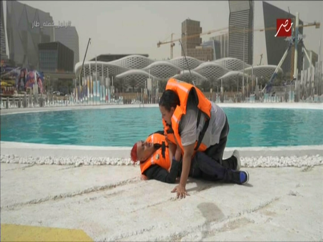 وحاولت ويزو عدم القفز من الكبسولة في حمام السباحة، قائلة: "مش هعرف أعوم"، ولكن فريق البرنامج قام بدفعها.