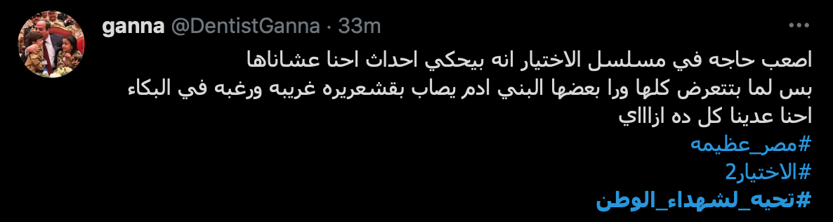 وتفاعل الآلاف من رواد موقع التواصل الاجتماعي مع "الهاشتاج"، وجاءت أبرز تغريدات الجمهور، فيما بين: “فخور بيكي يا بلدي.. لن ننسى كل شهدائنا.. مجهود وتعب لا ينسى بمسلسل رائع.. ربنا يبارك في الجيش والشرطة ويرحم شهادئنا.. أحمد عز وهند صبري بيعملوا عظمة.. عمل رائع يستحق كل الحب والتقدير”.
