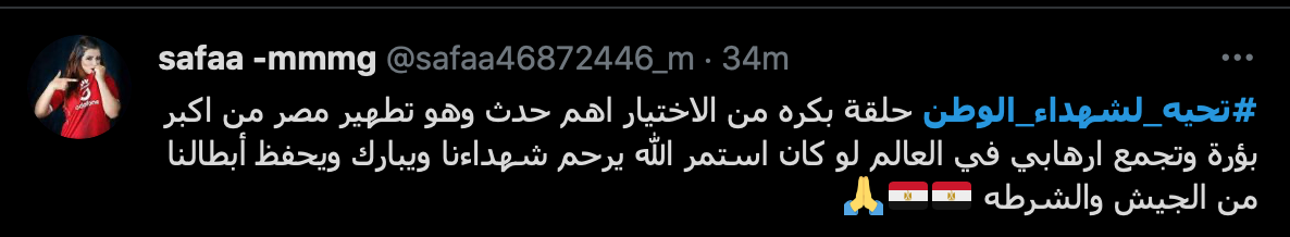 بآلاف التغريدات؛ تصدر هاشتاج "تحية لشهداء الوطن"، موقع التواصل الاجتماعي “تويتر”؛ عقب إذاعة الحلقة الرابعة من مسلسل هجمة مرتدة، للنجمين أحمد عز وهند صبري، على قناة “dmc” الفضائية.