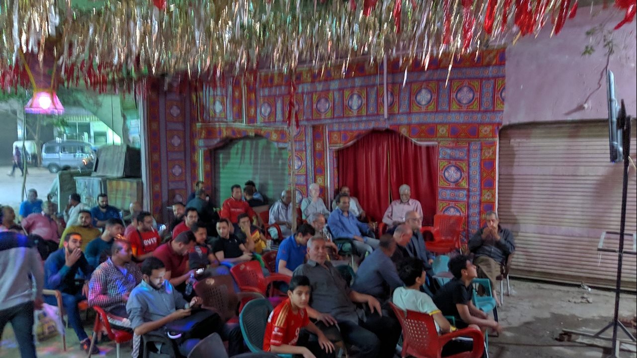 شهدت عدد من المقاهي بمدينة نصر وعزبة النخل إقبال عدد كبير المواطنين للاستماع لمباراة القمة بين الأهلي والزمالك .