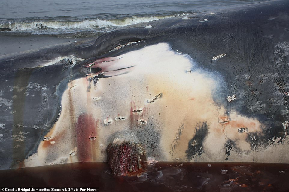 ووفقًا لما ورد في صحيفة «الديلي ميل» البريطانية، أكتشف السكان المحليون إصابة الحوت بشكل مروع في زعنفته إضافة إلى أنه كان ينزف من أماكن عدة.