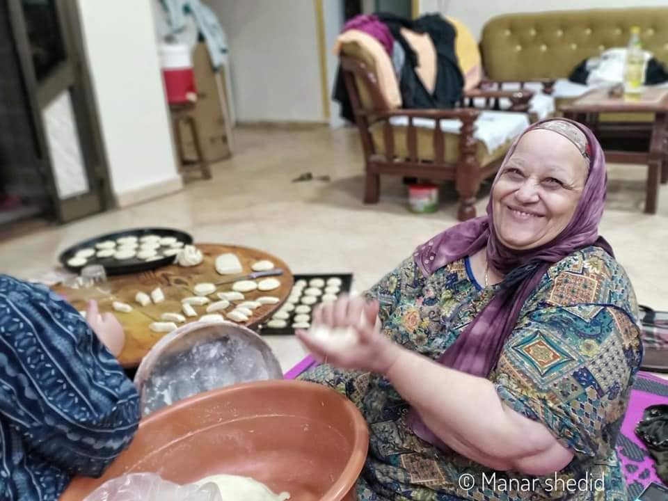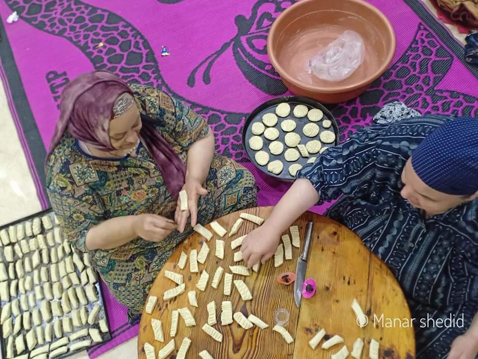 داخل منزل "منار شديد" بـ قليوب، شمرت الجارتان عن سواعدهما لاستقبال عيد القيامة المجيد وعيد الفطر المبارك بـ الكعك والقراقيش ومخبوزات العيد، حيث يتزامن موعد قدوم العيدين بفارق أيام، ولكن تلك الحالة والتناغم بين والدة منار "أم سعد" و"أم مرقص" لم يكن وليد هذا العام فقد جمعتهما طاولة واحدة لصنع حلويات العيد على مدار عقود ماضية.