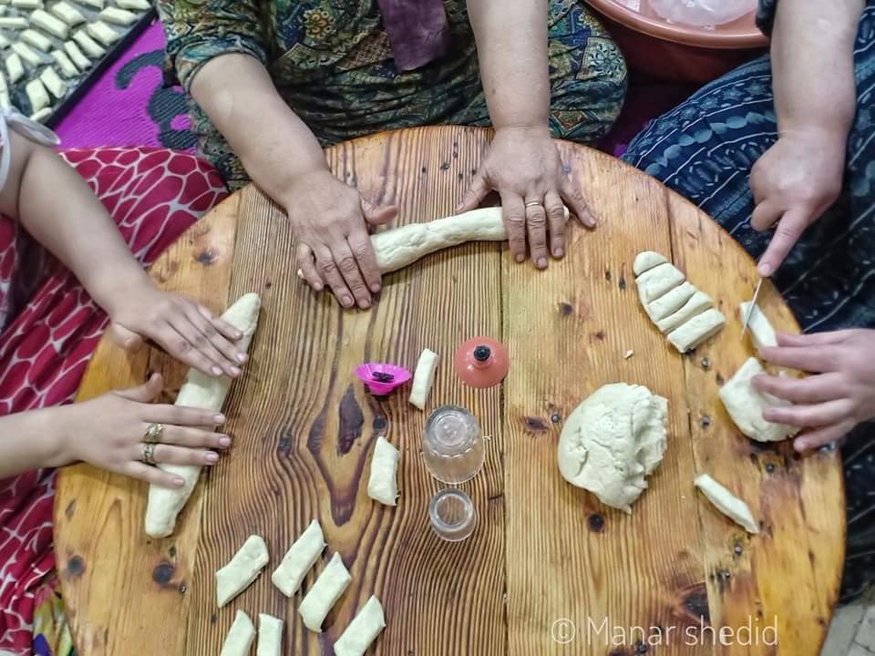 جيرة تدرس في كتب المحبة والود، رصدتها"منار" بعدسات كاميراتها في مجموعة صور تأثر القلب للجارتين وهن يصنعن كعك العيد، وتغمرهن السعادة بقدوم عيد الفطر المبارك، وعيد القيامة المجيد، واختتمت "منار" :"يحيا الهلال مع الصليب،كل سنة وإحنا كلنا مع بعض ومبسوطين".