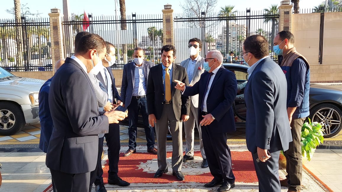 واستقبل اللواء عادل الغضبان، محافظ بورسعيد، وزير الرياضة فور وصوله لديوان عام المحافظة، لعقد اجتماع مغلق بحضور عدد من أعضاء مجلسي النواب والشيوخ لمناقشة خطوات تنفيذ توجيهات الرئيس.