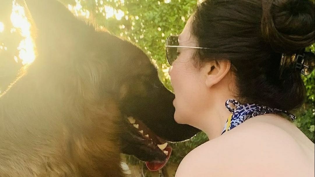 ورفعتنرمينشعرها للخلف على ظهرها وهو ما أبرز رقة ملامحها وعلقت "من احلي واوفي الحيوانات اللي في الدنيا"