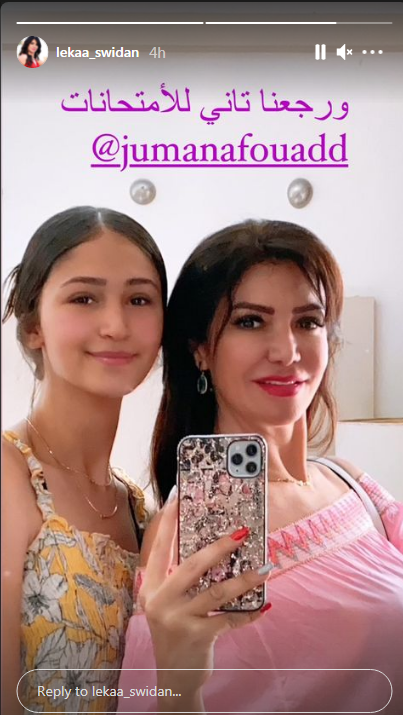 وظهرت لقاء سويدان فى الصورة بإطلالة أنيقة، برفقة ابنتها و علقت :"رجعنا للامتحانات تأنى".