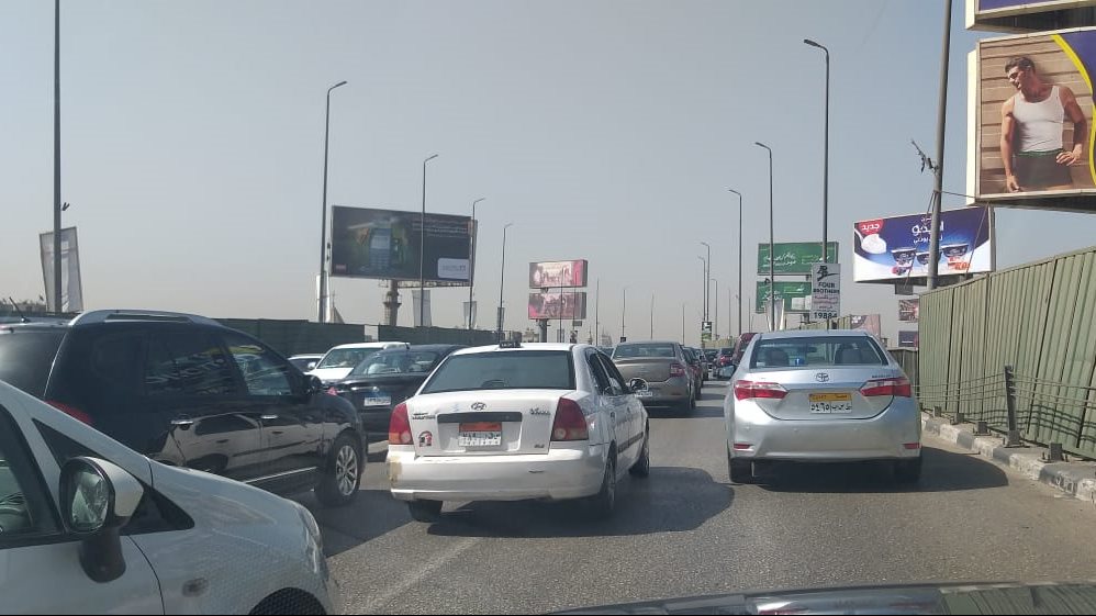 فيما تظهر كثافات مرورية على محور ٢٦ يوليو في التقاطع مع الطريق الدائري للقادم من مناطق الشيخ زايد باتجاه ميدان لبنان.