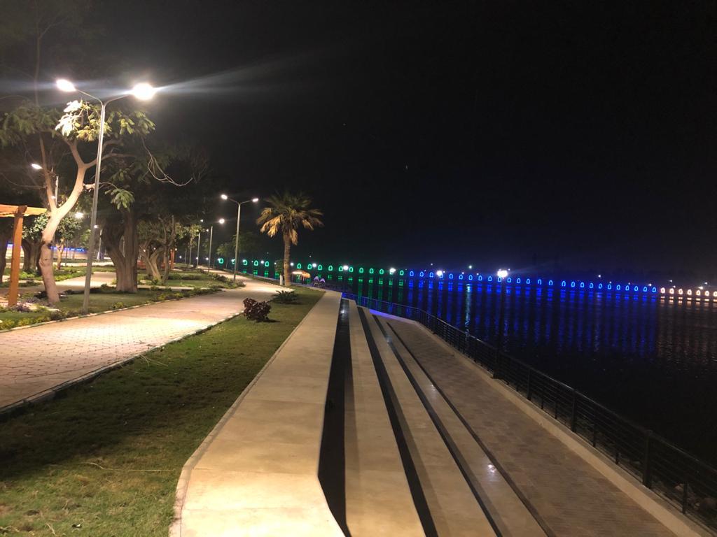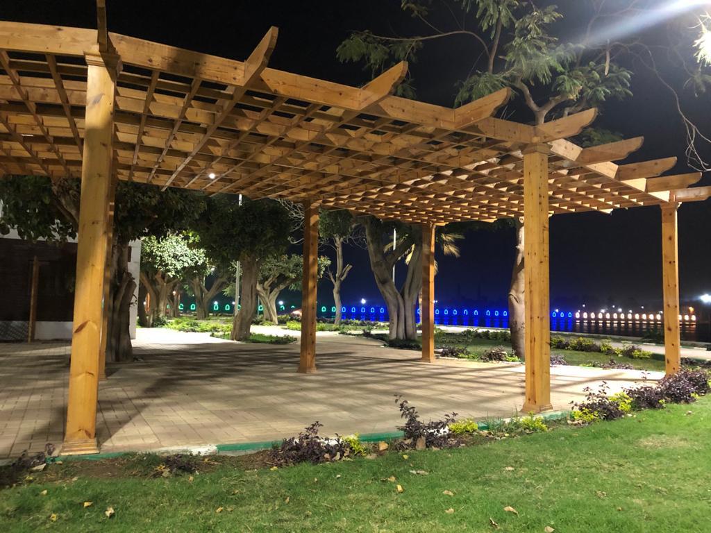 وأوضح عبد العاطى، أن أعمال التطوير تشتمل على عمل بحيرة صناعية بطول ١٥٠ متر على جانبيها أحواض من الزهور ومقاعد من الرخام وشلالات صناعية بالإضافة لكافيتريا وقاعة أفراح ومسطحات كبيرة من النجيلة الخضراء والأشجار والزهور والنباتات والأشجار النادرة ومقاعد خشبية وبرجولات ومشايات ودورات مياه، مع إستخدام شبكة ري حديث لرى الحديقة، وتنفيذ شبكه إناره ليليه للحديقة.