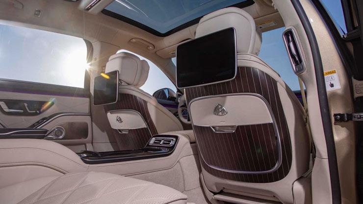 و تضم السيارة منظومة عادم مزدوجة الأداء، مع عواكس خلفية، و حساسات ركن، مع مصابيح نحيفة، كما تحتوي مايباخS من الداخل على شاشات عرض أمامية و بالمقاعد الخلفية، مع مسند يد يضم شاشة متعددة الوظائف، مع مجموعة من المكبرات الصوتية و الترفيهية، إلى جانب عجلة قيادة مالتي فانكشن، و لوحة عدادات ديجتال، و مكيف هواء متعدد المناطق.