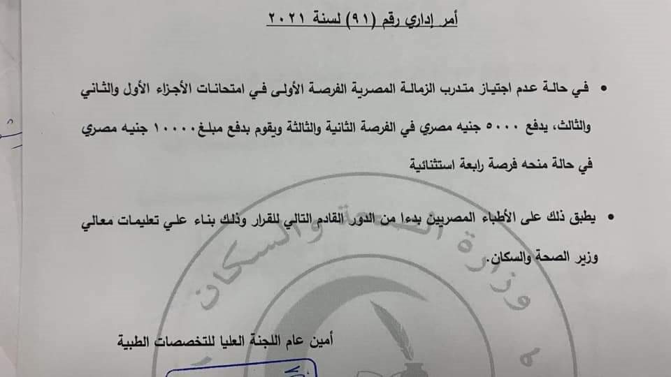 لذا نؤكد على ضرورة عودة الأطباء الى أماكن تدريبهم بعد مرور الشهرين حرصا على مستقبلهم ومستواهم وسمعة الزمالة المصرية