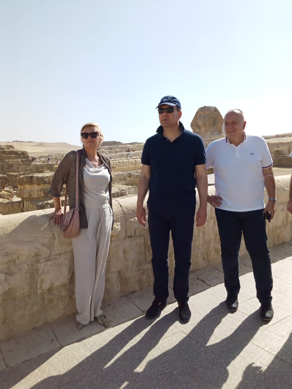وفي منطقة أهرامات الجيزة، كان في استقبال الوفد أشرف محيي الدين مدير عام المنطقة الذي اصطحبهم في جولة داخل المنطقة، حيث أبدى حاكم إقليم "فويفودينا" سعادته برؤية الهرم الأكبر العجيبة الوحيدة الباقية من العالم القديم، لافتا إلى أنها أول مرة يزور فيها منطقة الأهرامات.