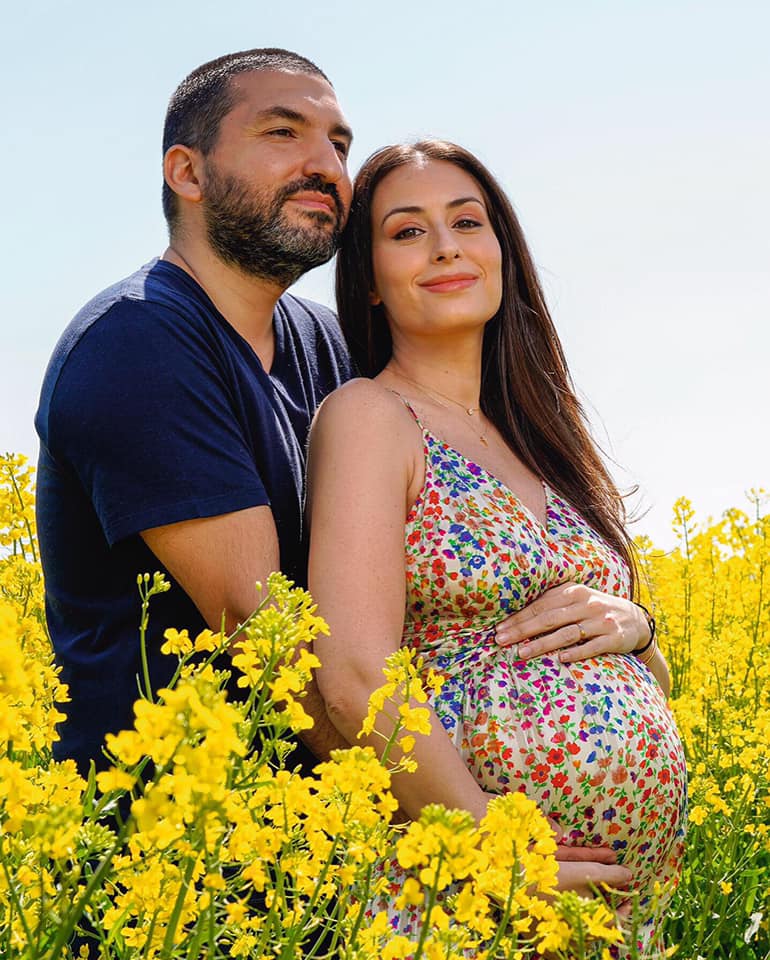 نشرت المغنية اللبنانية هبة طوجي صورة جديدة لها مع زوجها المؤلف الموسيقي الشهير إبراهيم معلوف، كشفت فيها عن حملها في الأشهر الأخيرة من طفلها الأول، بعد أقل من عام على زواجهما.