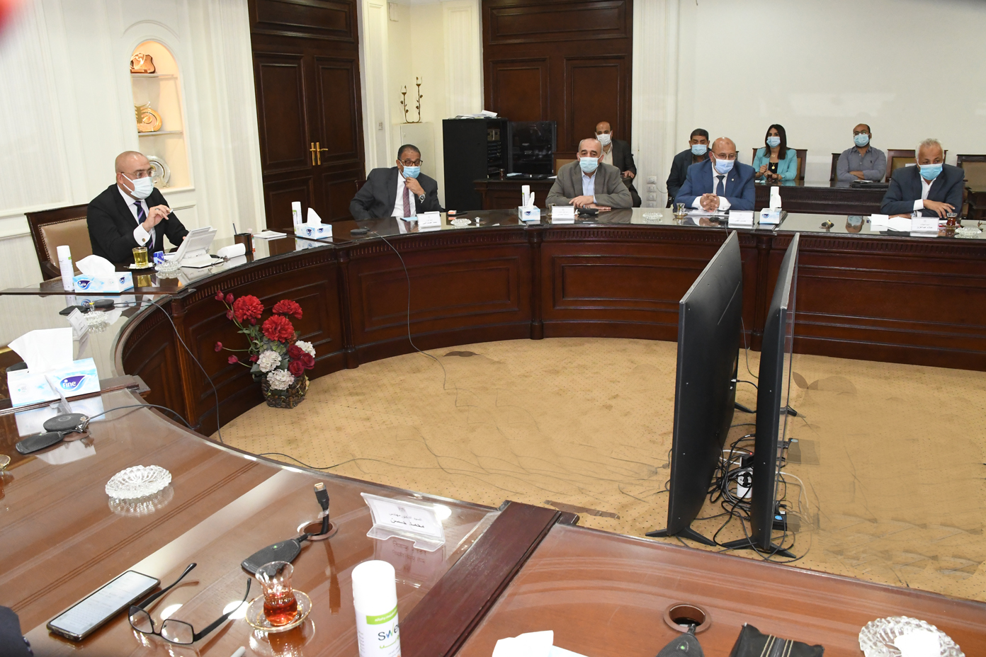 رافقه خلال الجولة المهندس ناجح عبدالرحمن رئيس الجهاز التنفيذي للهيئة القومية لمياه الشرب والصرف الصحي بأسيوط وخالد عويس رئيس مركز ومدينة الغنايم والمهندس صابر عبدالرؤوف مدير عام التنفيذ بالهيئة القومية لمياه الشرب والصرف الصحي بأسيوط والمهندسة وفاء أحمد سيد رئيس قطاع تنفيذ الأعمال المدنية بالهيئة القومية لمياه الشرب والصرف الصحي بأسيوط ومصطفى علي نائب رئيس مركز ومدينة الغنايم والمهندس عمرو عبدالسلام نائب مدير فرع أسيوط بشركة المقاولون العرب والمهندس عبدالكريم عبدالله مدير مشروعات صدفا والغنايم والمهندس محمود جلال مدير مشروع محطة معالجة صدفا والغنايم وأحمد جابر بفرع اسيوط شركة مقاولون العرب وممثلي الشركة المنفذة للمشروع.